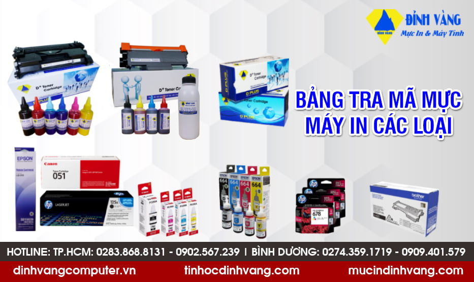 Hãy cùng Đỉnh Vàng Computer tham khảo Bảng Tra Mực Dùng Cho Máy In Các Loại và chọn đúng loại mực để có được những bản in chất lượng và tiết kiệm chi phí nhé!