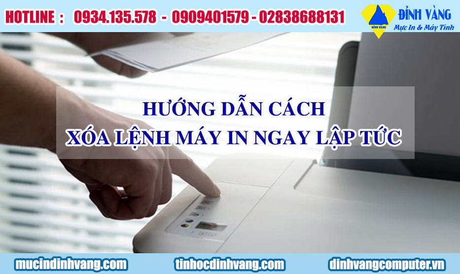 Xóa lệnh máy in là quá trình thao tác với văn bản hay bất kỳ file nào đó, sẽ có lúc bạn nhấn nhầm vào lệnh in, hoặc chọn chế độ in không đúng, chọn nhầm file cần in. Lúc đó bạn sẽ xử lý như thế nào? Nhanh chóng lấy hết giấy trong khay đựng giấy, xóa lệnh máy in hay tắt nguồn máy in. Nói chung, chúng ta có khá nhiều cách để khiến máy in không tiếp tục in nữa, nhưng nếu bạn không thực hiện cẩn thận có thể gây ra những rắc rối không mong muốn. Vì thế trong bài viết này, Đỉnh Vàng Computer sẽ giới thiệu đến bạn một số cách xóa lệnh máy in ngay lập tức giúp bạn tiết kiệm giấy và mực in một cách hiệu quả mà không gây ra bất kỳ lỗi gì cho máy in.