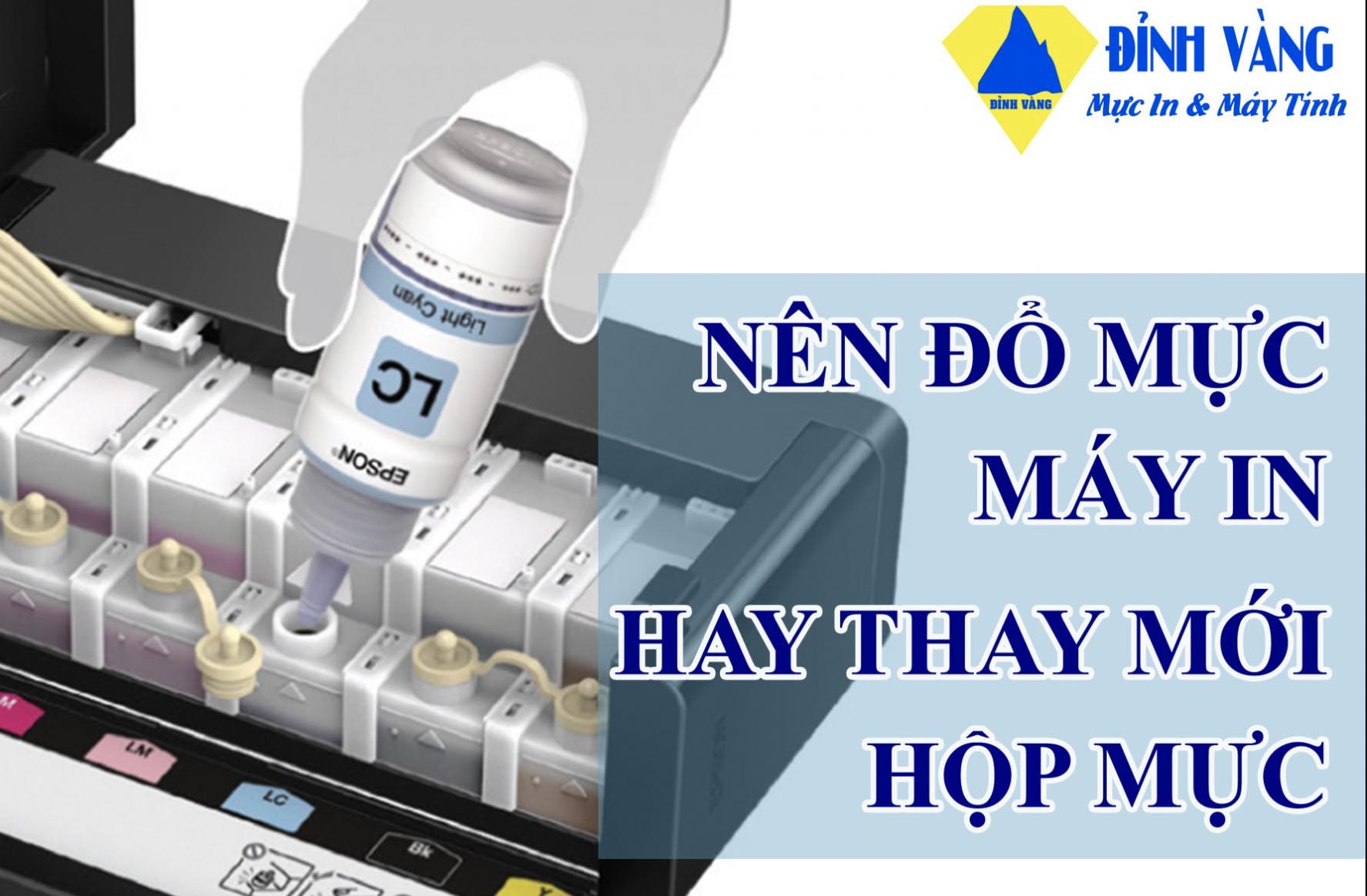 Có nên đổ mực máy in không, hay thay mới hộp mực? là vấn đề mà bất kỳ người sử dụng máy in nào cũng đang thắc mắc. Có người bảo thay hộp mực mới chính hãng mới giúp máy in hoạt động bền hơn nhưng cũng có người khuyên nên đổ mực máy in để tiết kiệm và không ảnh hưởng gì nhiều đến chất lượng bản in cũng như tuổi thọ của máy in. Vậy đâu mới là câu trả lời chính xác cho câu hỏi Có nên đổ mực máy in để tiết kiệm chi phí không? Mời bạn cùng Đỉnh Vàng tìm hiểu bài viết dưới đây để có câu trả lời hợp lý nhất.
