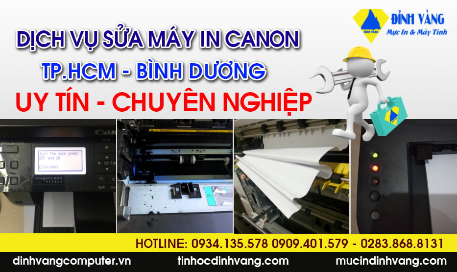 Máy in Canon là dòng máy in được rất nhiều doanh nghiệp, văn phòng lựa chọn sử dụng vì tính năng ưu việt cũng như độ bền bỉ và kiểu dáng hiện đại. Đương nhiên là trong quá trình làm việc, lâu ngày hoặc do người sử dụng máy in không đúng cách, sẽ xảy ra lỗi máy in hoặc hỏng hóc linh kiện máy in. Vì vậy dịch vụ sửa máy in Canon Tp.HCM – Bình Dương của Đỉnh Vàng sẽ có mặt tận nơi, nhanh chóng, để hỗ trợ doanh nghiệp, công ty bạn khắc phục ngay vấn đề của máy in, giúp công việc của bạn không bị đình trệ.