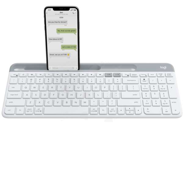 Logitech K580 cho phép bạn kết nối với PC, smartphone hoặc máy tính bảng của mình cùng một lúc. Chỉ cần sử dụng công tắc Easy Switch, bạn đã có thể chuyển đổi giữa các chế độ với nhau. Cạnh trên của bàn phím được thiết kế một rãnh để bạn đặt điện thoại hoặc máy tính bảng ở vị trí ngang hoặc dọc thuận tiện cho người dùng.