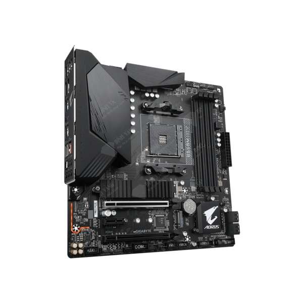 Bo mạch chủ AMD B550 AORUS với thiết kế nguồn điện kép kỹ thuật số 10 + 2 pha, tản nhiệt bề mặt mở rộng, Khe cắm PCIe 4.0 x16, PCIe 4.0 / 3.0 x4 M.2 kép với một bộ phận bảo vệ nhiệt, 2.5GbE LAN, RGB FUSION 2.0, Q-Flash Plus