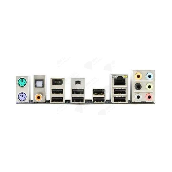 1 x cổng bàn phím PS / 2 1 x cổng chuột PS/2 1 x đầu nối S / PDIF Out đồng trục 1 x đầu nối S / PDIF ra quang học 2 x cổng IEEE 1394a 8 x cổng USB 2.0 / 1.1 1 x cổng RJ-45 Giắc cắm âm thanh 6 x (Loa trung tâm / Loa siêu trầm Ra / Loa sau Ra / Loa bên ngoài / Dòng vào / Dòng ra / Micrô) |
