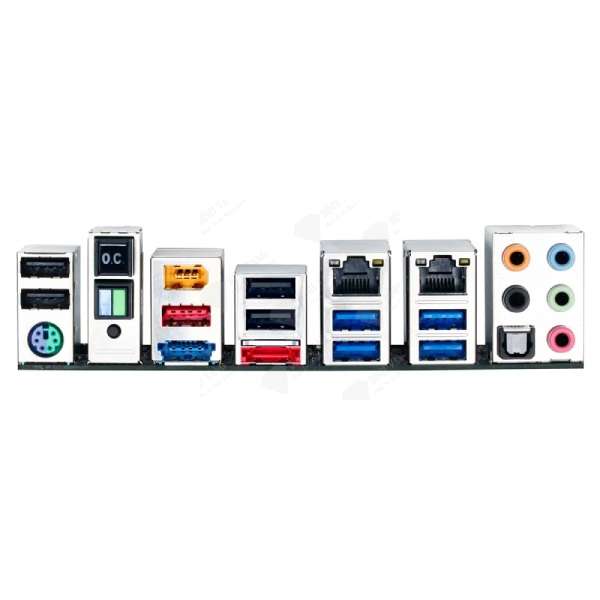 1 x PS/2 cổng bàn phím/chuột 1 x nút ép xung CPU 1 x nút chuyển bios 1 x Nút Clear CMOS 1 x cổng IEEE 1394a 4 x cổng USB 3.0 / 2.0 5 x cổng USB 2.0 / 1.1 1 x đầu nối Combo eSATA / USB 1 đầu nối eSATA 6Gb / s 2 x cổng RJ-45 1 x đầu nối S / PDIF ra quang học Giắc cắm âm thanh 5 x (Loa trung tâm / loa siêu trầm Out, Loa sau ra, Dòng vào, Dòng ra, Mic In) |