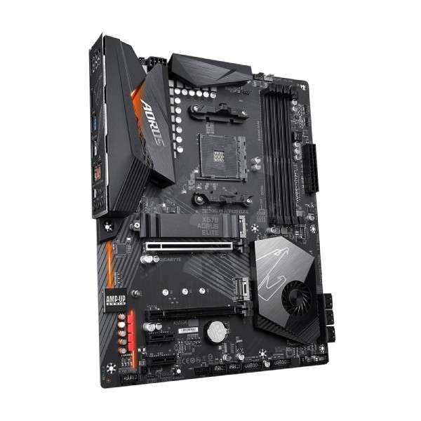 Bo mạch chủ AMD X570 AORUS với VRM kỹ thuật số 12 + 2 pha với DrMOS, Thiết kế nhiệt tiên tiến với tản nhiệt phóng to, PCIe 4.0 M.2 kép với Bộ bảo vệ nhiệt đơn, Intel GbE LAN với cFosSpeed, USB trước Type-C, RGB Fusion 2.0