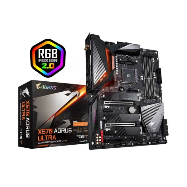 Bo mạch chủ AMD X570 AORUS với VRM kỹ thuật số IR 12 + 2 pha, Tản nhiệt mảng vây &Ống dẫn nhiệt cảm ứng trực tiếp, Triple PCIe 4.0 M.2 với Bộ bảo vệ nhiệt, Intel WiFi 6 802.11ax, Intel GbE LAN với cFosSpeed, USB Type-C, RGB Fusion 2.0