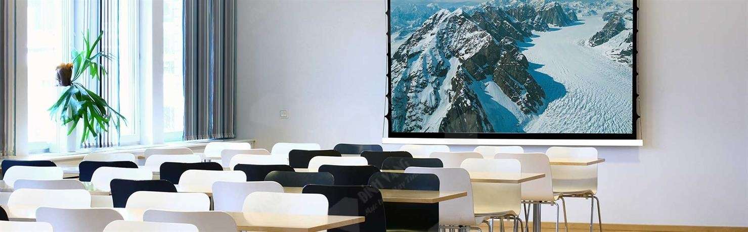 Màn hình máy chiếu điện 150 inch cũng được sử dụng trong giáo dục và công việc, đặc biệt là trong các cuộc họp quy mô lớn hoặc khi cần hiển thị nội dung với kích thước lớn để tất cả mọi người đều có thể nhìn thấy rõ.