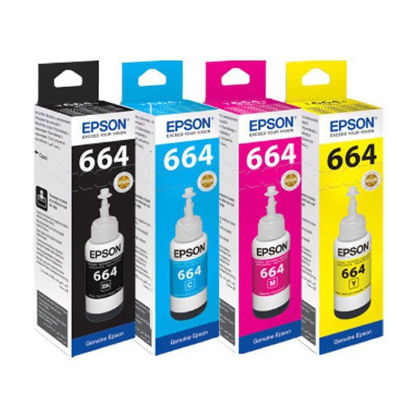 Mực in Epson T664 chính hãng khả năng in ấn đa dạng dùng cho các dòng máy Epson: L100, L110, L200, L210, L300, L310, L350, L360,…với dung tích 70ml/màu được đóng kín bảo quản kĩ càng, đảm bảo chất lượng nhất cho mực.