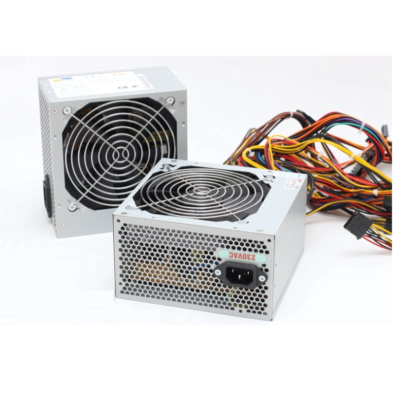 Nên dòng CE2 không trang bị công tắc chuyển điện áp, phía sau nó chỉ có duy nhất một ổ lấy điện với tem ghi chú mức điện áp hoạt động được ghi rõ “230VAC”. Thiết kế phù hợp với tiêu chuẩn ATX có 2 đường 12V tách biệt cung cấp riêng cho CPU một nguồn năng lượng khá tốt có thể lên tới 19A. Mức tổng công suất liên tục có đạt được là 450W. Đường -12VDC được giới hạn ở mức thấp nhất là 0.3A, trong khi đó đường 5VSB tuy không có mức công suất cao ngất ngưỡng như với 2A cũng đã là dư thừa cho các máy tính tầm trung hoạt động tốt.