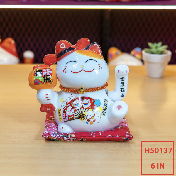 – Chất liệu: Mèo thần tài được làm từ gốm cao cấp – nung ở nhiệt độ cao, đảm bảo các tiêu chuẩn nghiêm ngặt nhất trong quá trình nung gốm sứ. Chính vì thế những chú mèo thần tài luôn được đảm bảo độ sáng bóng và màu tươi mới, không bị bay màu hay đổi màu theo thời gian.