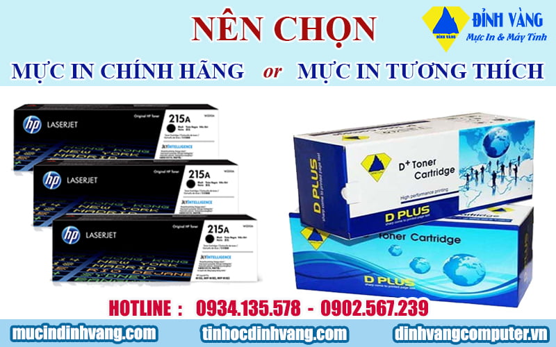 Nói chung, mực chính hãng và mực tương thích điều có những ưu nhược điểm riêng. Nếu kinh tế của bạn có khả năng sử dụng hộp mực chính hãng, thì Đỉnh Vàng khuyên bạn nên dùng mực chính hãng. Còn nếu không, bạn hoàn toàn có thể sử dụng mực tương thích. Vì chất lượng bản in của mực tương thích không khác quá nhiều so với mực chính hãng. Nếu trong quá trình sử dụng và nạp mực, bạn thao tác cẩn thận thì mực tương thích sẽ không làm ảnh hưởng nhiều đến tuổi thọ máy in.