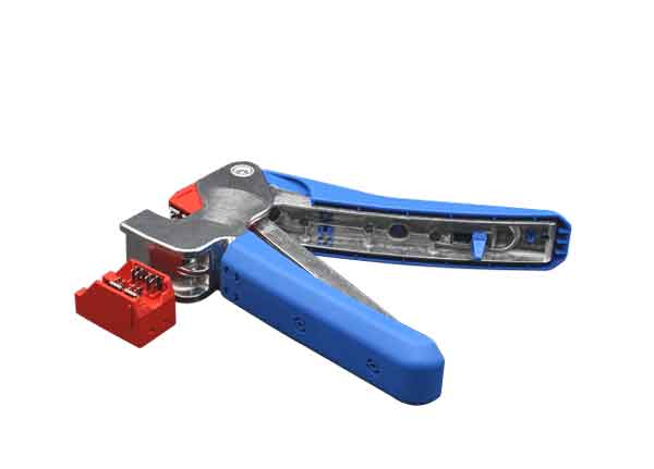 E Tool Dintek, nhấn cáp 1 lúc 4 đôi vào ổ cắm mạng dạng ngang, nó cho phép bạn có thể vừa nhấn cáp vào Keystone Jack vừa có thể cắt đi những lõi cáp dư ra, đảm bảo các đầu tiếp xúc đồng đều, hiệu suất tốt hơn và giảm thời gian thi công.
