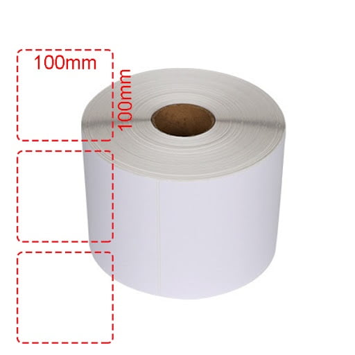 Giấy decal in mã vạch 100x100mm x 50m , tem bo góc , màu trắng được quấn thành cuộn với chiêu đãi 50m , lôi lên thích hợp cho các máy in mã vạch để bàn nhỏ gọn tiết kiệm không gian Giấy decal in mã vạch 100x100mm sử dụng loại decal mật bóng thông dụng nhất trên thị trường hiện nay thích hợp dẫn nhãn mã vạch trên các thùng hàng , bưu kiện dùng trong các ứng dụng vận chuyển Gia decal nhiên vach barcode 4×6 trong vận chuyển cũng như lưu kho .