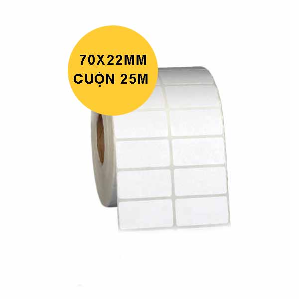 Giấy in tem 2 tem 70x22x25m có thiết kế gồm 2 tem 35x22mm trên 1 hàng tem. Cảm nhiệt nhạy, độ trắng cao trên 85 ISO cho chất lượng tem in nét, bền, tích hợp keo dính ở mặt sau, in xong bóc ra dán trực tiếp vào sản phẩm. Sử dụng tốt với đa số các dòng máy quét mã vạch, không kén máy. Sản phẩm chuyên dùng cho các loại máy in mã vạch khổ 2 tem (hỗ trợ độ rộng tem tối đa: 80mm)
