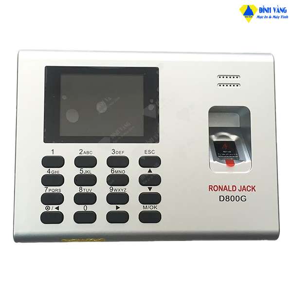 Máy chấm công Ronald Jack D800G sử dụng công nghệ chấm công bằng vân tay có tính bảo mật cao, màn hình hiển thị màu, thiết kế sang trọng, bền bỉ mà giá cả lại vô cùng rẻ,... Máy chấm ronald jack d800g là sản phẩm chấm công đến từ thương hiệu Ronald Jack, đây là một trong những thương hiệu chuyên cung cấp các loại máy chấm công chất lượng trên thị trường với quá trình hình thành và phát triển hơn 30 năm, nên bạn có thể yên tâm về chất lượng sản phẩm.