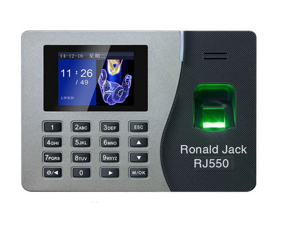 Máy chấm công vân tay Ronald Jack RJ-550 công nghệ mới nhất, màn hình 2.8 “TFT, công suất 1000 dấu vân tay. Mỗi nhân viên có thể khai báo 10 dấu vân tay giúp dễ dàng và tiện lợi hơn trong việc chấm công, loại trừ các khả năng các ngón tay bị thương tật khi chấm công.