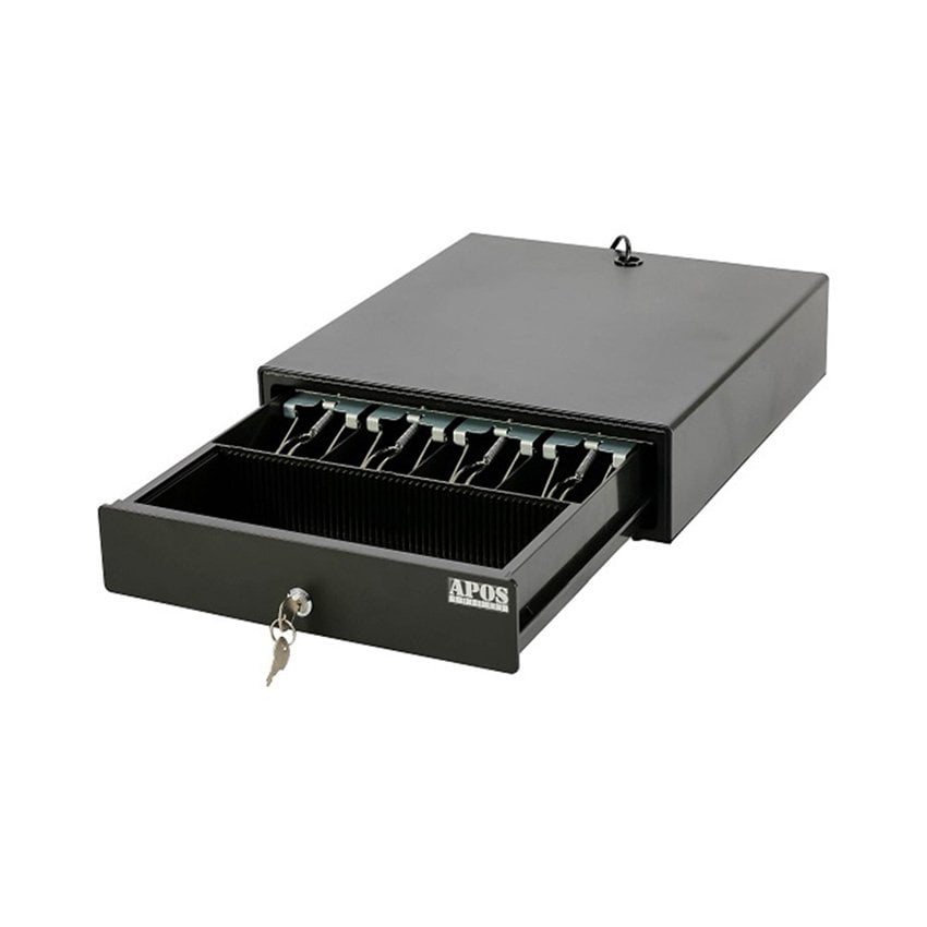 Apos 330 có chức năng kết nối với máy in hóa đơn, phần mềm bán hàng, phần mềm nhà hàng để tự thiết lập 2 chế độ mở két là tự động và mở tay bằng khóa.Độ bền sản phẩm ngăn kéo đựng tiền Apos 330 lên tới 1 triệu lần, sẽ là sản phẩm lựa chọn hoàn hảo cho khách hàng.