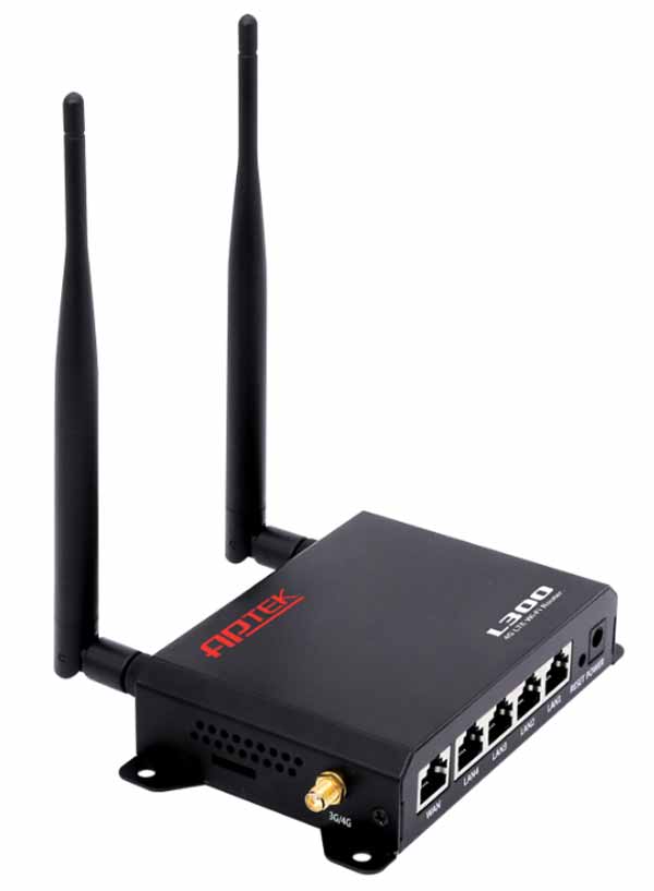 Router wifi APTEK L300 với thiết kế nhỏ gọn, với 4 cổng Fast Ethernet LAN cộng với việc tích hợp thêm khe sim cho phép sử dụng kết nối 4G/LTE như đường truyền internet chính, cho phép APTEK L300 có thể sử dụng với nhiều mục đích khác nhau như triển khai internet, camera tại công trường, nông trường, trên xe hoặc hội chợ ngoài trời….