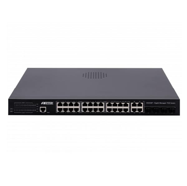 APTEK SG2244P bao gồm 24 cổng PoE / PoE + chuẩn 802.3at/af hỗ trợ hoàn hảo cho việc cung cấp nguồn qua cáp mạng cho các thiết bị Access Point, Camera IP… APTEK SG2244P cung cấp tính năng voice VLAN và QoS tự động để cải thiện chất lượng cuộc gọi VoIP. Tất cả các cổng của SG2244P là cổng Gigabit. Tính năng link aggregation – gộp đường truyền được sử dụng để tăng thông lượng và độ tin cho hệ thống mạng.