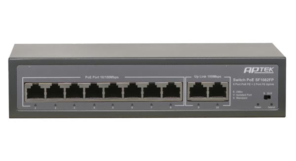 Model switch APTEK SF1082FP 8 port PoE chuyên dụng cho hệ thống IP camera, Wi-Fi AP và IP Phone. Dưới đây là những tính năng nổi bật của switch PoE APTEK SF1082FP: