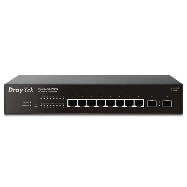 Tất cả 8 cổng Ethernet của VigorSwitch P1092 tương thích với chuẩn 802.3at và 802.9af, cung cấp tối đa 30W mỗi cổng cho các thiết bị mạng như Wireless access point, IP phone và thiết bị giám sát bằng IP. Điều này giúp giảm lượng cáp điện và adapter, giảm chi phí cũng như nâng cao tính linh hoạt trong lắp đặt.