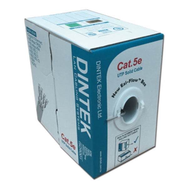 Cáp mạng DINTEK Cat5e UTP 305m là cáp mạng có xuất xứ Đài Loan (Taiwan).Sản phẩm đang được ưa chuộng và sử dụng phổ biến trên các công trình nhờ khả năng truyền tải ổn định, cho cả trường hợp truyền tải dữ liệu với khoảng cách xa, ít bị hư hại do tác động của môi trường.