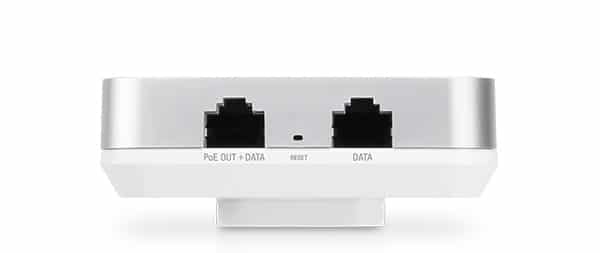 Một cổng trên UniFi AC In-Wall cung cấp nguồn PoE cho thiết bị chuẩn 802.3af, cổng còn lại cấp tín hiệu mạng. UniFi AC In-Wall có thể cấp tín hiệu cho thiết bị mạng hoặc cấp nguồn POE cho điện thoại VoIP, hoặc thiết bị US-8 để có thêm cổng mạng.