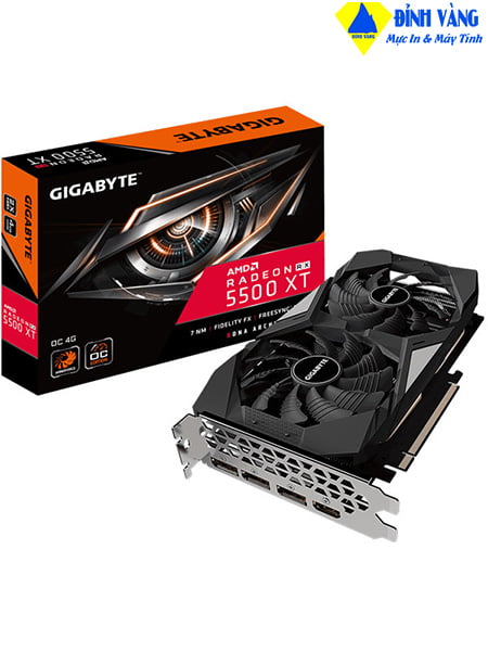 VGA GIGABYTE Radeon RX 5500 XT OC 4G Chính Hãng DVC có hệ thống làm mát WINDFORCE 2X có quạt cánh quạt độc đáo 2x 90mm, quạt quay xen kẽ, 3 ống dẫn nhiệt bằng đồng composite, cảm ứng trực tiếp ống dẫn nhiệt và chức năng quạt hoạt động 3D, cùng với khả năng tản nhiệt hiệu quả cho hiệu suất cao hơn ở nhiệt độ thấp hơn.